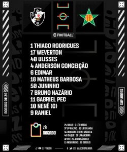 Confira a escalação oficial do Vasco para enfrentar a Portuguesa: