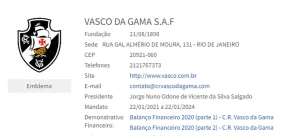 Vasco e a Ferj chegaram a um acordo nesta quarta-feira (24) em reunião na sede da federação para que o clube selasse sua divida e pudesse prosseguir com o processo de registro da Sociedade Anônima de Futebol (SAF). O clube já aparece no site da federação: