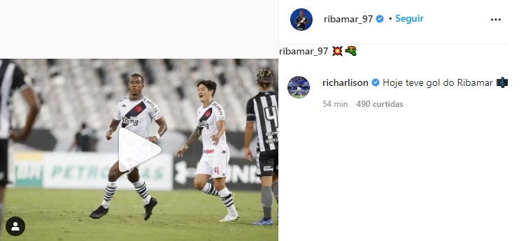 Através de uma postagem em uma foto de Ribamar, no Instagram, Richarlison afirmou: ”Hoje teve gol do Ribamar”, comentou o atacante do Everton.