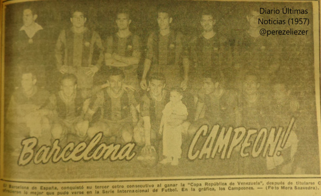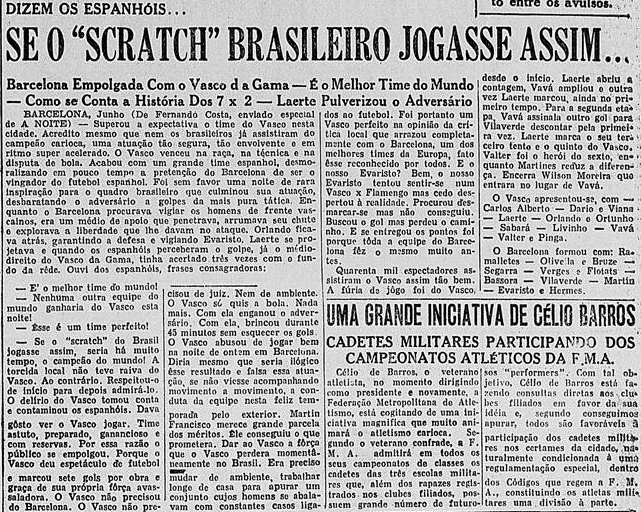 Barcelona que perdeu para o Vasco: Ramallets, Olivella, Brugue, Segarra, Verges, Flotats, Basora, Villaverde, Martinez, Evaristo, Hermes Gonzalez. T: Balmanya.