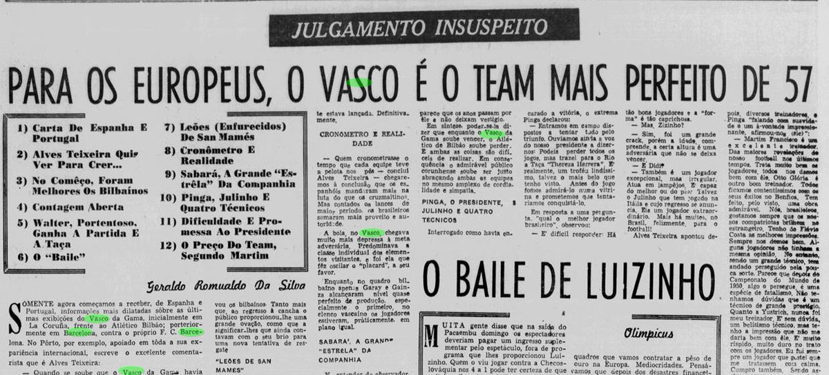 Escalação do Cruzmaltino que meteu 7 gols no Barça: Carlos Alberto; Dario e Viana; Laerte, Orlando e Ortunho; Sabará, Livinho, Vavá (Wilson M.), Válter e Pinga. T: Martim Francisco.