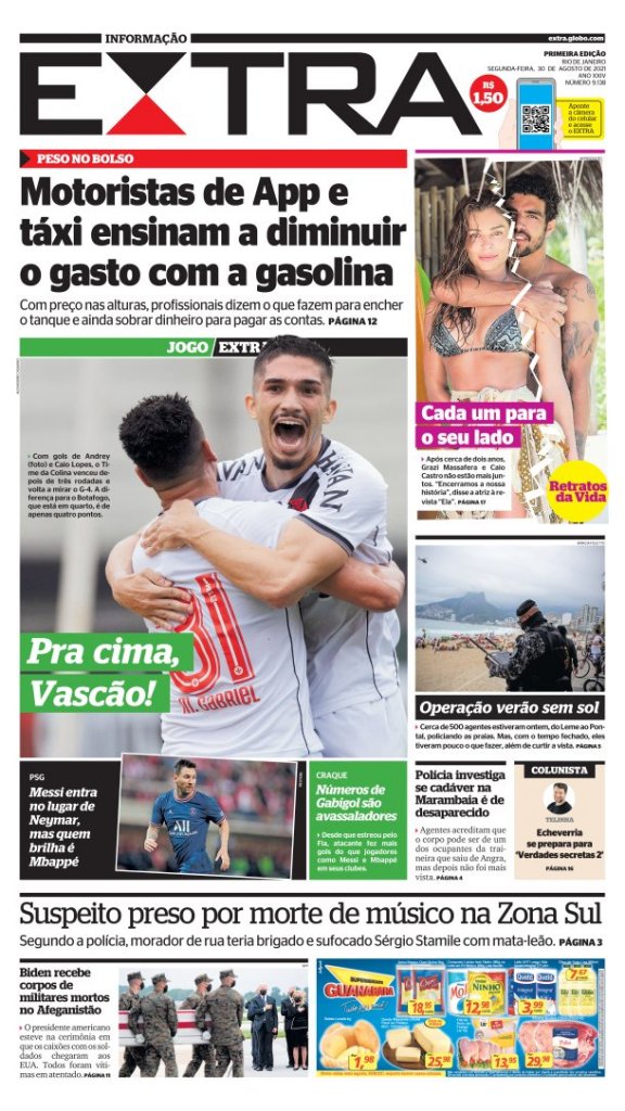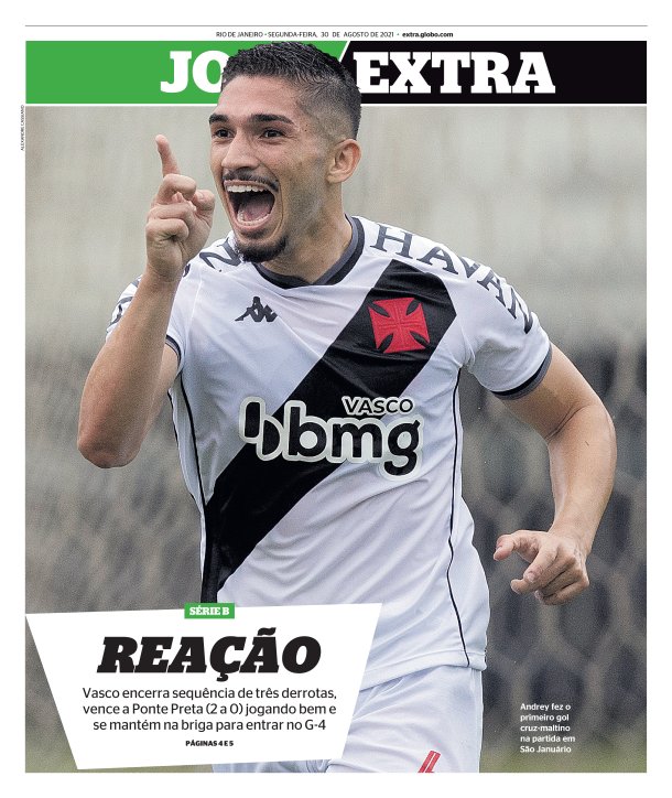 Confira as capas dos jornais após Vasco 2 x 0 Ponte Preta pelo Campeonato Brasileiro da Série B.