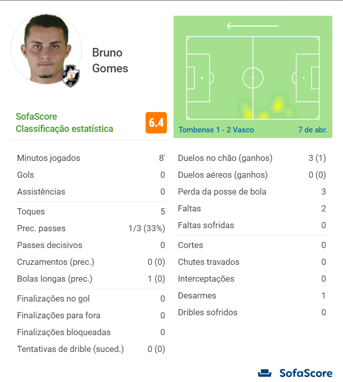Bruno Gomes não vive uma das melhores fases pelo Vasco. A promessa vascaína de 20 anos na atual temporada fez 9 jogos e 1 gol. No total, foram 569 minutos em campo, tendo iniciado 7 jogos como titular. A torcida vascaína tem se incomodado com a lentidão e a falta de dinamismo.