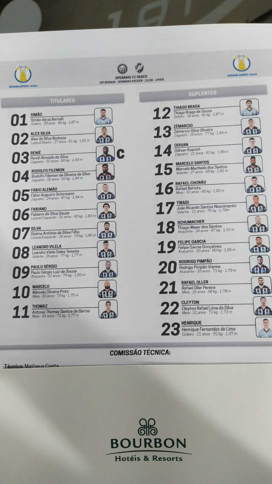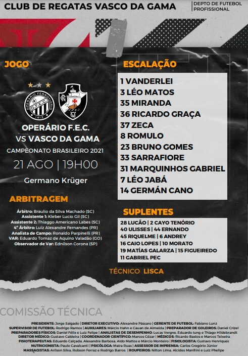 O Vasco irá enfrentar o Operário, no estádio Germano Kruger, no Paraná, neste sábado (21), às 19h.