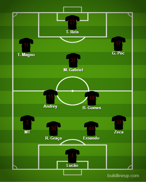 O lateral Léo Matos ainda não está nas melhores condições de jogo, pois estava com Covid-19, e deve ser substituído por Zeca, o novo reforço é polivalente e pode atuar nas duas laterais.
