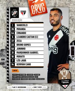 Com alterações, confira a escalação oficial do Vasco para enfrentar o São Paulo