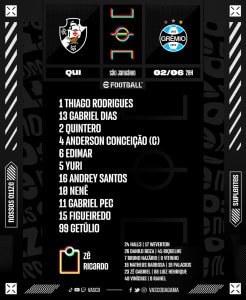 O Vasco da Gama está escalado para o duelo desta quinta-feira (2), contra o Grêmio, às 20h, em São Januário. Getúlio e Figueiredo titulares. <strong>Escalação oficial do Vasco para o jogo contra o Brusque</strong> <div id="papon-1097312584" class="papon-conteudo_2"> [caption id="attachment_23874" align="aligncenter" width="321"]<img class=" wp-image-23874" src="http://staging.paponacolina.com.br/wp-content/uploads/2022/06/FUR3e4eWYAc12Wu-246x300.jpeg" alt="" width="321" height="391" /> Fonte: Divulgação[/caption] </div>
