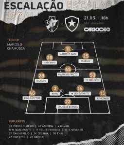 Confira as escalações de Vasco e Botafogo, que se enfrentam pelo Campeonato Carioca