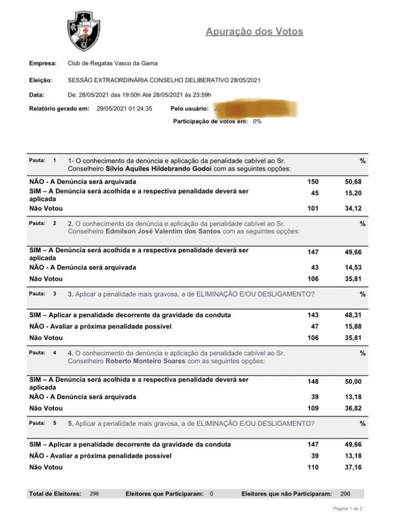 A política do Vasco da Gama segue escrevendo novos capítulos em sua história. Em reunião do Conselho Deliberativo realizado na madrugada deste sábado, ficou decidido a exclusão de Edmilson Valentim e Roberto Monteiro do quadro social do Vasco da Gama.