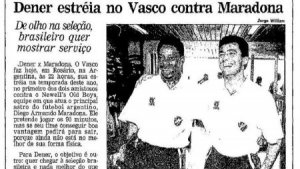 Diego ficou encantado com a técnica de Dener. Clóvis Munhoz, médico do clube na época, e o técnico Jair Pereira confirmaram que o Pibe D’oro se encantou, elogiou e aconselhou bastante o craque brasileiro do Vasco da Gama, que lamentavelmente morreria meses depois em um acidente automobilístico.