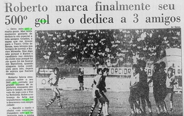 Em 1982, o maior ídolo da história do Vasco fazia mais uma proeza em São Januário. Com um lindo gol de falta diante do Volta Redonda, Roberto marcava seu gol de número 500 na carreira.