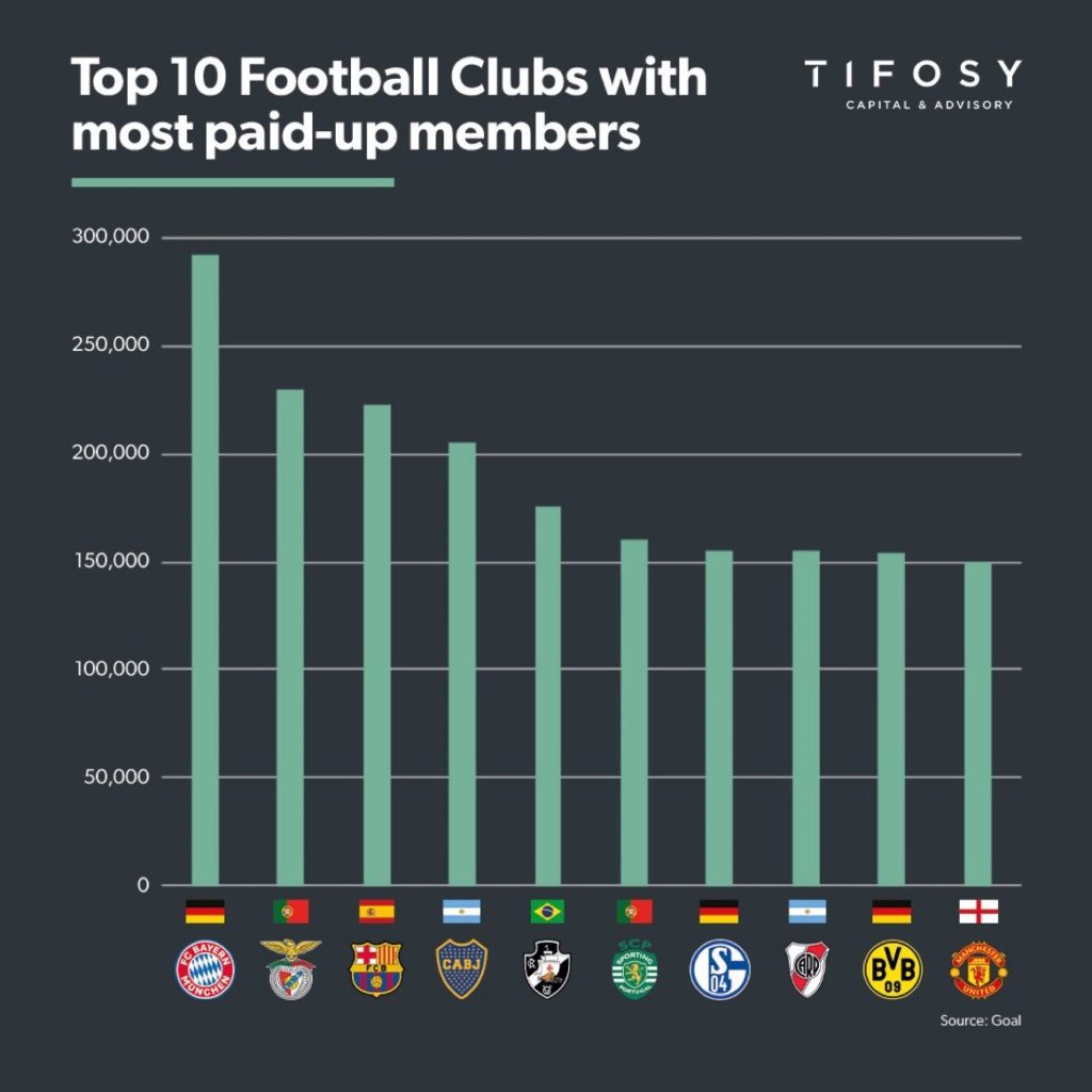 Segundo o levantamento publicado pelo mestre em Direito Econômico pela University of Warwick, Marcos Motta, o Vasco da Gama figura na quinta posição do ranking de clubes com mais sócios pagantes no mundo.