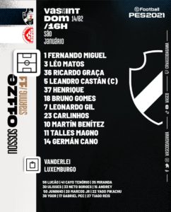 Vasco escalado para enfrentar o Internacional – Foto: Twitter Vasco da Gama