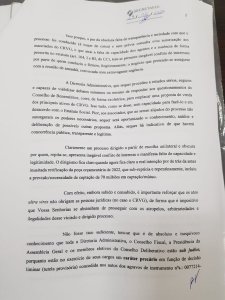 Na notificação, Roberto Monteiro solicita que não ocorra a reunião para aprovação do empréstimo-ponte marcada para esta quinta (24) pelo Presidente do CD, Carlos Fonseca.